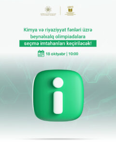 18 oktyabrda Azərbaycan Respublikasının Təhsil İnstitutunun Təhsil Texnologiyaları Mərkəzində kimya və riyaziyyat fənləri üzrə beynəlxalq olimpiadalara hazırlıq məqsədilə seçmə imtahanlar təşkil ediləcək.