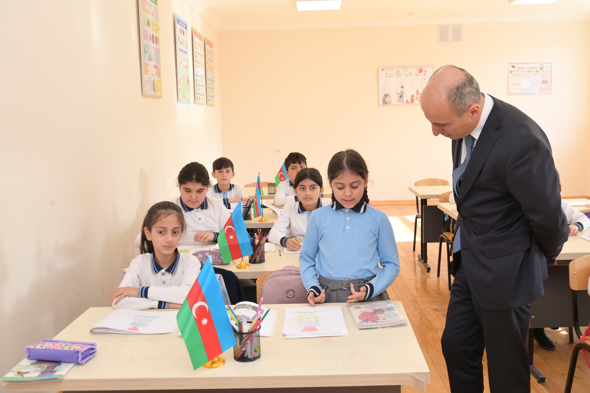 Daha sonra nazir Xocalı şəhəri 1 nömrəli tam orta məktəbdə tədris prosesini izləyib, müəllim və şagird kollektivi ilə görüşüb, burada yaradılmış şəraitlə tanış olub.