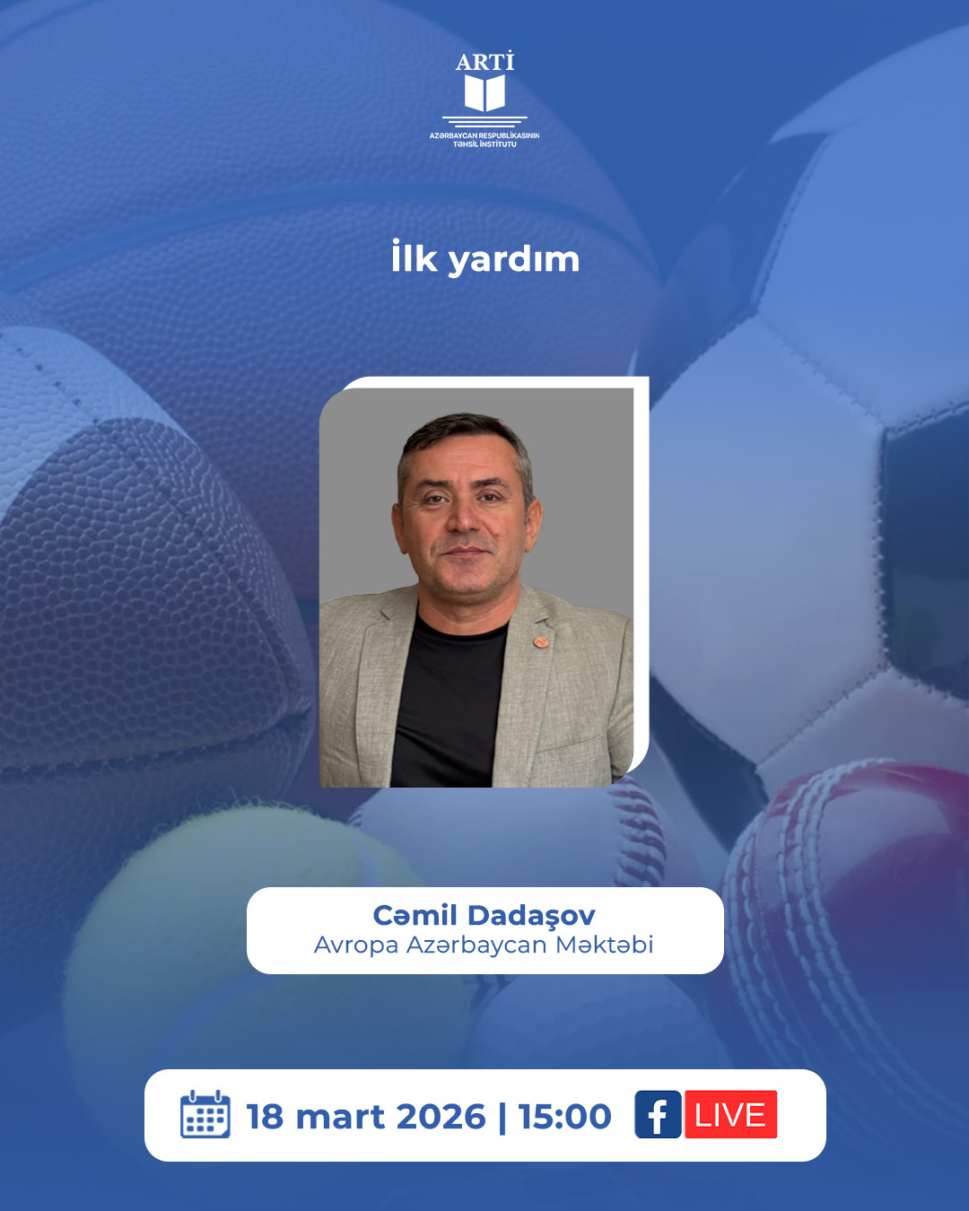 Azərbaycan Respublikasının Təhsil İnstitutu (ARTİ) təhsilverənlərin sertifikatlaşdırılması prosesinə dəstək məqsədilə martın 18-də saat 15:00-da fiziki tərbiyə fənni üzrə “İlk yardım” mövzusunda vebinar keçirəcək.
