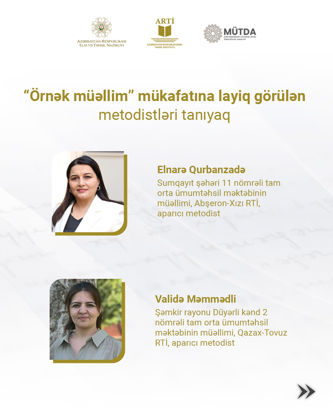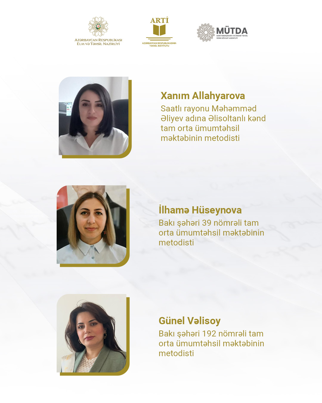Metodistlərimizi bu uğur münasibətilə təbrik edir, onların təhsilimizin inkişafına töhfə verən fəaliyyətlərinin davamlı olmasını arzulayırıq.