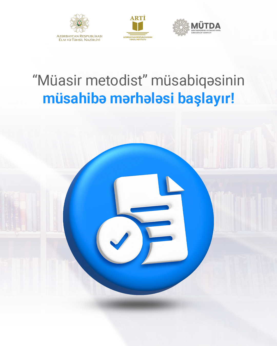 ARTİ Metodik Dəstək Mərkəzi tərəfindən icra olunan “Müasir metodist” müsabiqəsinin müsahibə mərhələsi aprelin 13-də başlayır. Bu mərhələ mayın 12-dək davam edəcək. Cavablar mayın son günlərində Regional Təhsil İdarələrinə və namizədlərin telefon nömrələrinə SMS vasitəsilə göndəriləcək.