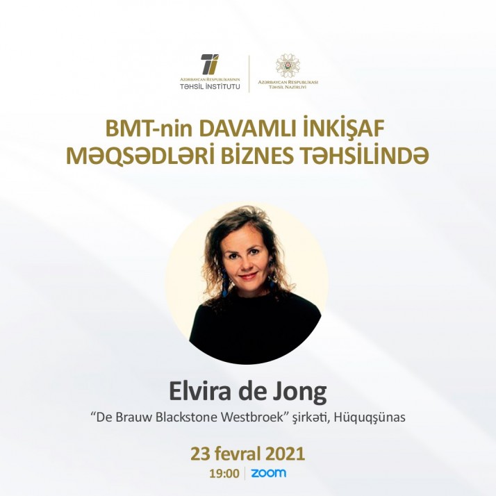 Azərbaycan Respublikasının Təhsil İnstitutu Sizi, 23 fevral 2021-ci il, saat 19:00-da keçiriləcək “Niyə gələcəyə yönəlik biznes təhsilinə BMT-nin Davamlı İnkişaf Məqsədləri üzrə təhsil də daxildir?” adlı vebinarda iştirak etməyə dəvət edir.