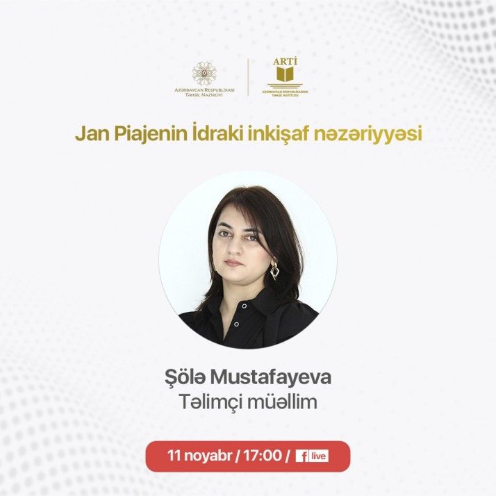 Növbəti vebinar 11 noyabr tarixində saat 17:00-da “Jan Piajenin İdraki inkişaf nəzəriyyəsi” mövzusunda keçiriləcək. Vebinarda spiker qismində təlimçi müəllim Şölə Mustafayeva çıxış edəcək.