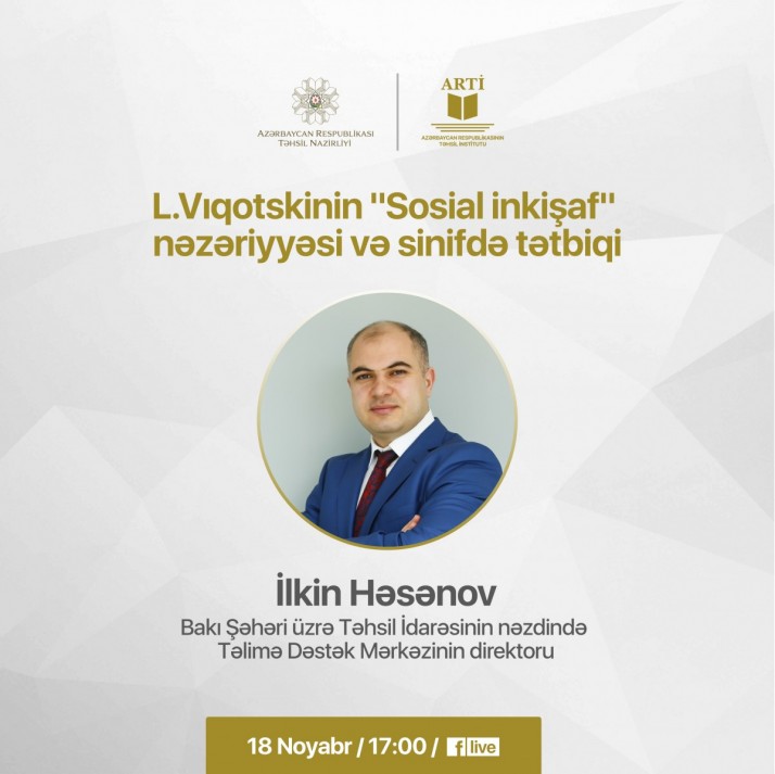 Növbəti vebinar 18 noyabr saat 17:00-da “L.Vıqotskinin "Sosial inkişaf" nəzəriyyəsi və sinifdə tətbiqi” mövzusunda keçiriləcək.