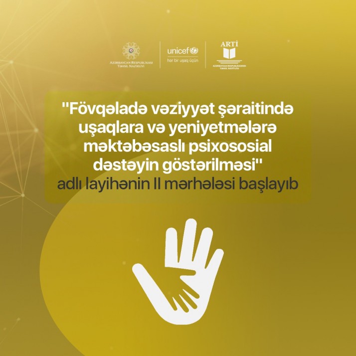 ARTİ Azərbaycan Respublikasının Təhsil Nazirliyi və BMT-nin Uşaq Fondu (UNICEF) ilə birgə "Fövqəladə vəziyyət şəraitində uşaqlara və yeniyetmələrə məktəbəsaslı psixososial dəstəyin göstərilməsi" adlı layihənin II mərhələsinin icrasına başlayıb. Sözügedən layihə Norveçin Xarici İşlər Nazirliyinin maliyyə dəstəyi ilə həyata keçirilir.