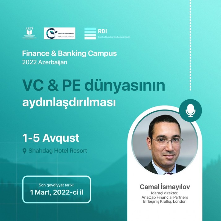 Seminarda C. İsmayılov “VC & PE dünyasının aydınlaşdırılması” mövzusunda çıxış edəcək. İki saat ərzində nəzərdə tutulan seminar özəl kapital bazarlarının genləri, onların tarixi və ən son inkişafları da daxil olmaqla, vc və pe maliyyələşdirmə sferasını əhatə edəcək. Seminar həmçinin yeni və mövcud müəssisələrin şəxsi kapitala necə çıxış əldə etməsini, habelə VC və PE fondlarındakı karyera seçimlərini işıqlandıracaq.