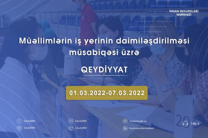 1 mart tarixindən etibarən start verilən müəllimlərin iş yerinin daimiləşdirilməsi üzrə müsabiqənin elektron qeydiyyat mərhələsi başa çatıb.