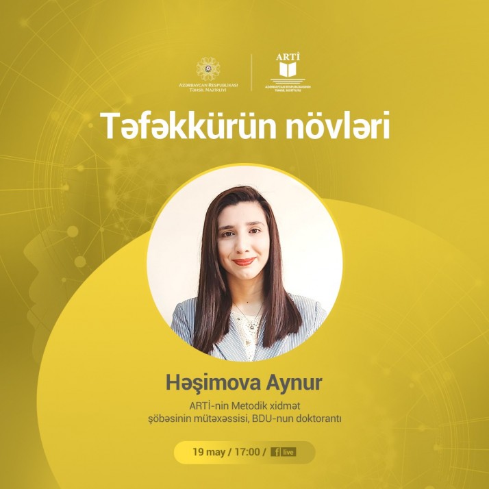 19 may tarixində saat 17:00-da “Təfəkkürün növləri” mövzusunda vebinar keçiriləcək.