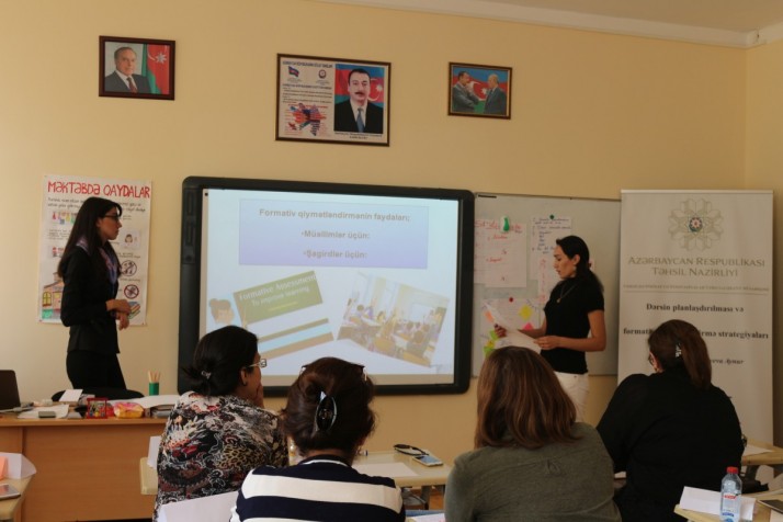Təlim müddətində perspektiv və cari planlaşdırma nümunələrinin hazırlanması, cari planlaşdırmada əsas məqamlar – keçiləcək mövzu üzrə standartın düzgün müəyyənləşdirilməsi, dərsin məqsədlərinə uyğun olaraq qiymətləndirmə meyarlarının doğru seçilməsi, formativ qiymətləndirmənin təşkili qaydaları, formativ qiymətləndirmədə istifadə edilən üsul və vasitələrin fərqləndirilməsi mövzuları haqqında interaktiv təlim keçirilib.