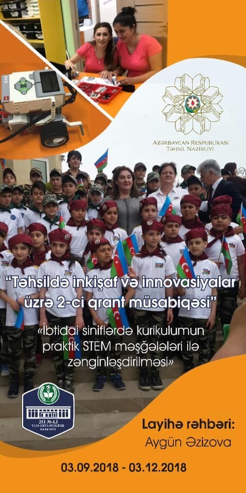 Təhsil Nazirliyinin elan etdiyi "Təhsildə İnkişaf və İnnovasiyalar üzrə 2-ci qrant müsabisəsi"ndə ümumtəhsil məktəblər kateqoriyası üzrə qalib olmuş 251 № li tam ortra məktəbin “İbtidai siniflərin kurikulumunun praktik STEM məşğələləri ilə zənginləşdirilməsi: müqayisəli analiz və pilot proqramlar" adlı layihəsi uğurla icra olunmaqdadır.