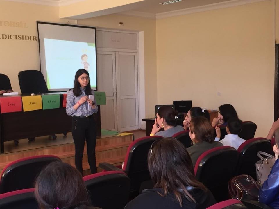 Təlimdə Avropa İttifaqının maliyyə dəstəyi ilə Azərbaycan Respublikasının Təhsil İnstitutunun (ARTİ) həyata keçirdiyi “İcma qrupları vasitəsilə məktəbəqədər və ibtidai təhsilin yaxşılaşdırılması” layihəsi çərçivəsində fəaliyyət göstərən İcma əsaslı Uşaq Təhsil Mərkəzlərinə cəlb edilmiş uşaqların valideynləri iştirak ediblər.