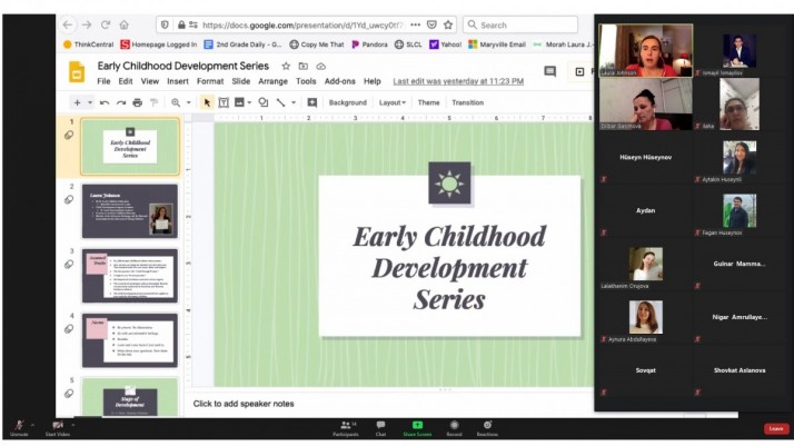İyul ayı ərzində məktəbəqədər təhsil sahəsində işləyən əməkdaşlar üçün “Erkən yaş dövründə uşaqların inkişafına təsir edən amillər və Bağlılıq nəzəriyyəsi” mövzusunda silsiləli vebinarlar təşkil olunub. Vebinar “İcma əsaslı məktəbəqədər təhsilin inkişafı” layihəsinin Azərbaycan Sosial İş İctimai Birliyi ilə əməkdaşlığı çərçivəsində baş tutub. Vebinarlar məktəbəqədər təhsil üzrə 15 illik təcrübəyə malik, amerikalı mütəxəssis Laura Conson tərəfindən onlayn şəkildə keçirilib.