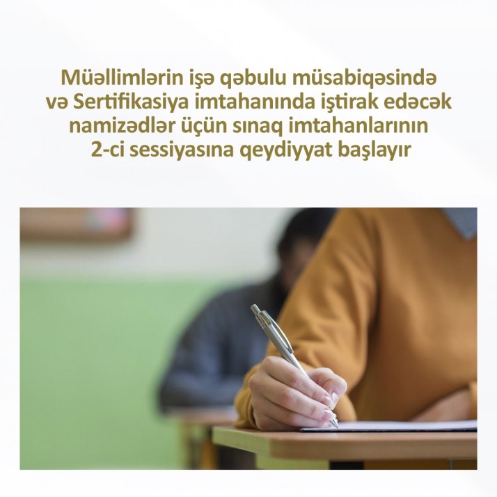 Müəllimlərin işə qəbulu müsabiqəsində və Sertifikasiya imtahanında iştirak edəcək namizədlər üçün sınaq imtahanlarının 2-ci sessiyasına qeydiyyat başlayır.