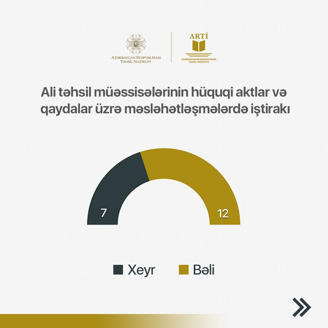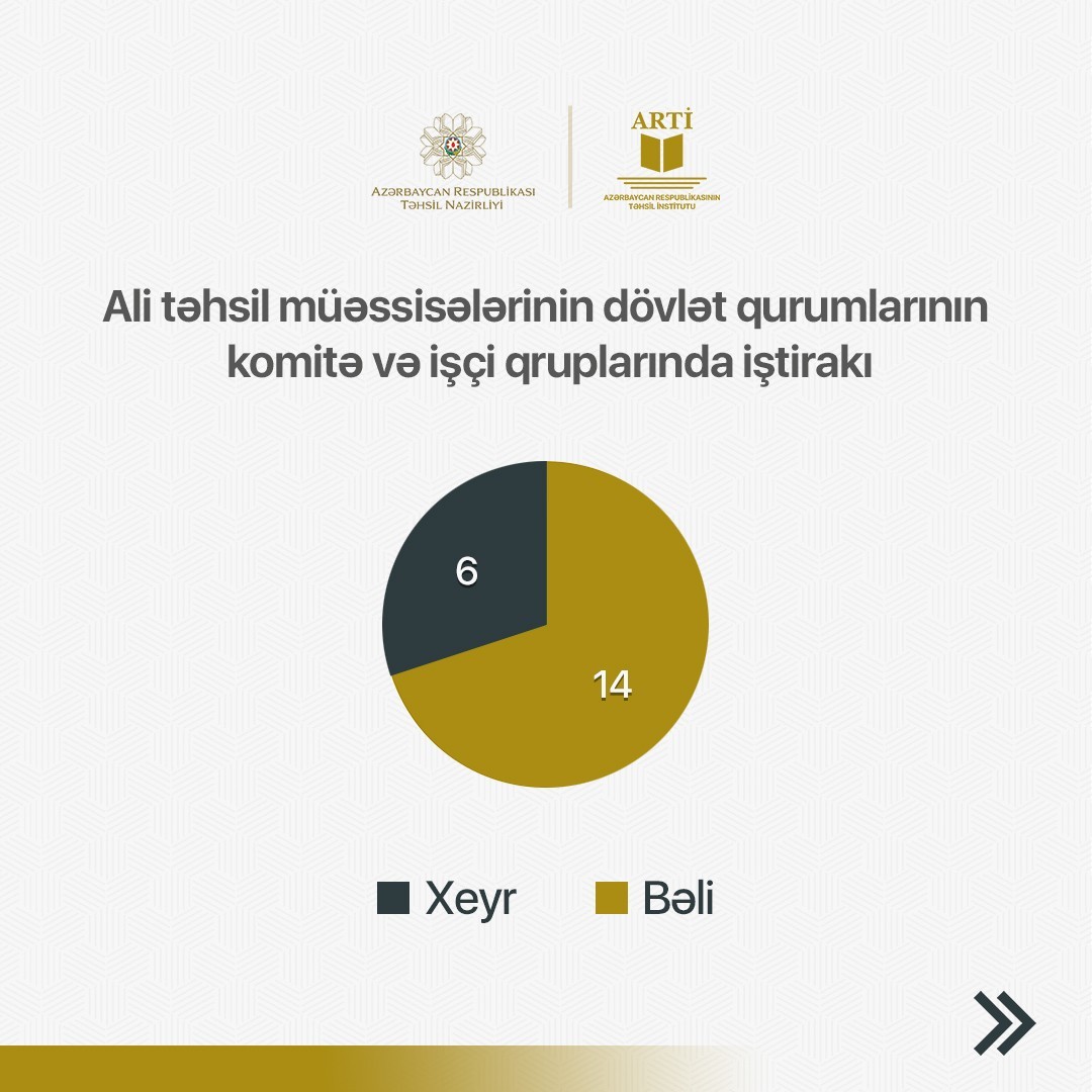 Ali təhsil müəssisələri-Dövlət əməkdaşlığını araşdırmaq məqsədilə həyata keçirilən sorğunun nəticələri ilə aşağıdakı infoqrafikalarda tanış ola bilərsiniz.