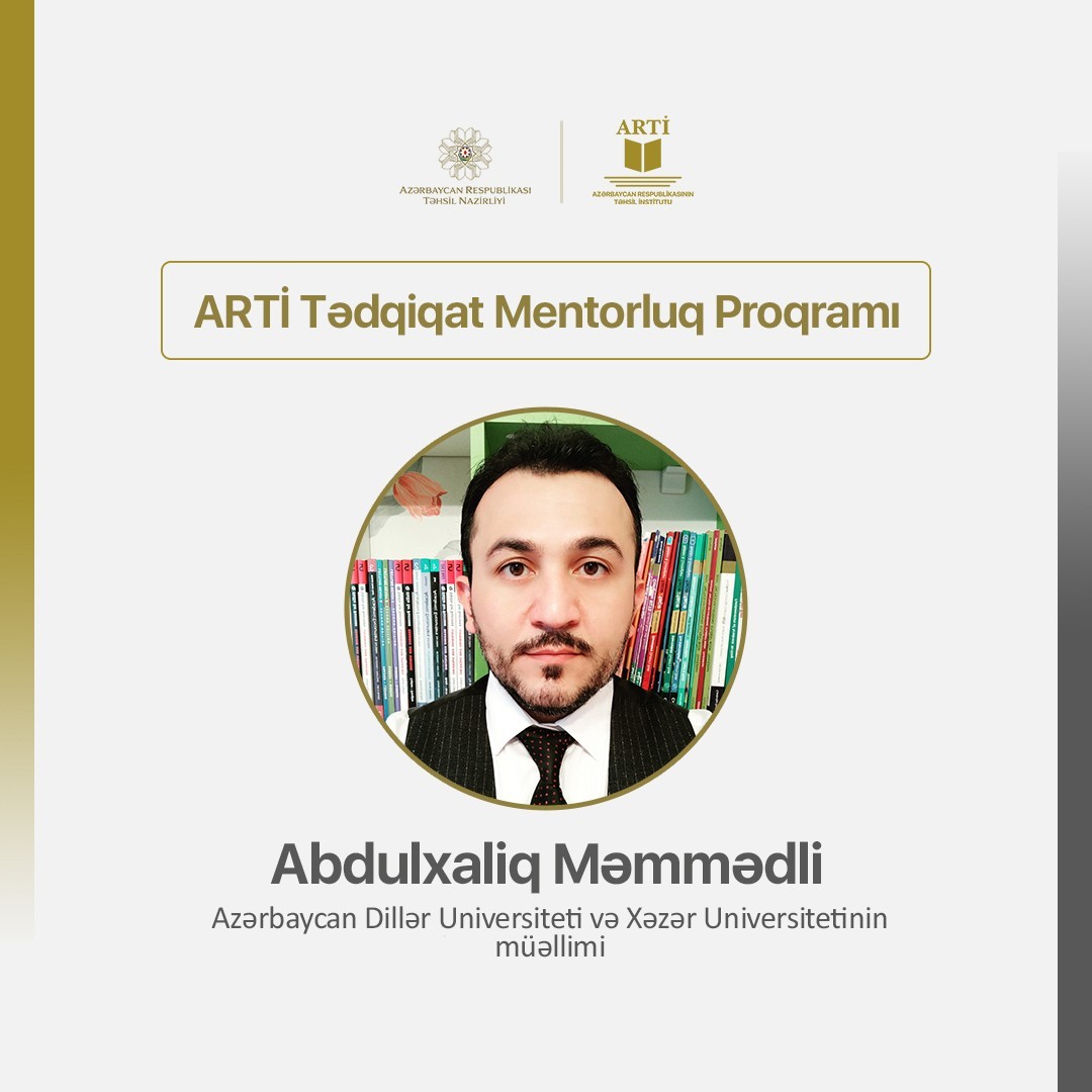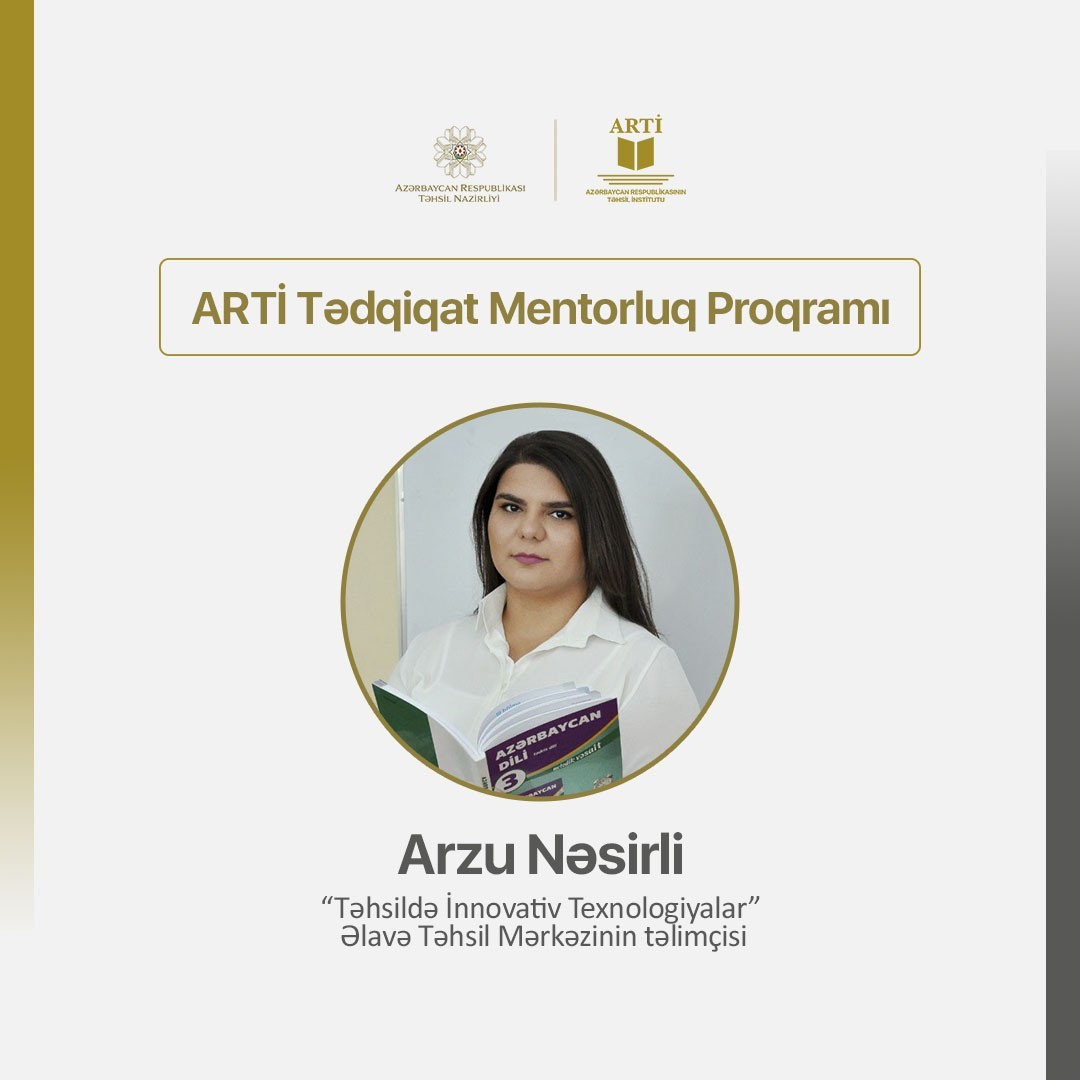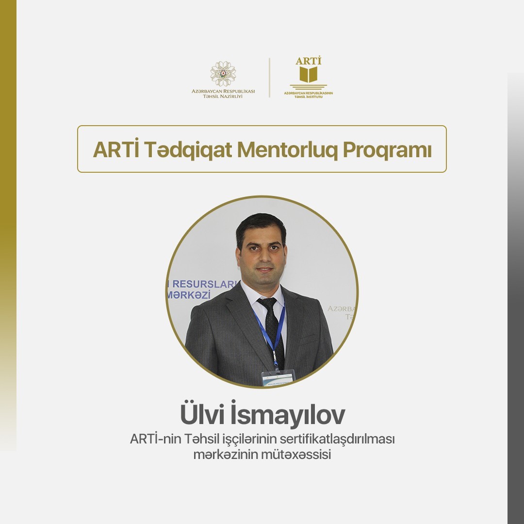 Azərbaycan Respublikasının Təhsil İnstitutu (ARTİ) tərəfindən icra olunan ARTİ Tədqiqat Mentorluq Proqramına seçilən mentorların daha bir qismi haqqında ətraflı məlumatı diqqətinizə çatdırırıq. Nəzərinizə çatdıraq ki, davamlı olaraq həyata keçirilməsi planlaşdırılan proqramda iştirak üçün 21 nəfər mentor seçilib. Proqramda iştirak edən mentorlar ümumi təhsil, peşə təhsili və ali təhsilin müxtəlif istiqamətləri üzrə tədqiqat işlərinə rəhbərlik edəcəklər.
