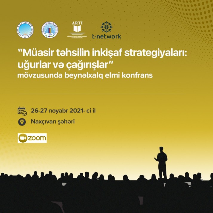 Naxçıvan Müəllimlər İnstitutu, Naxçıvan Dövlət Universiteti, ARTİ-nin tərəfdaşlığı və T-Network təhsil işçilərinin təcrübə və kommunikasiya platformasının təşkilatçılığı ilə “Müasir təhsilin inkişaf strategiyaları: uğurlar və çağırışlar” mövzusunda beynəlxalq elmi konfrans (əyani və videobağlantı formatlarında) 26-27 noyabr 2021-ci il tarixində Naxçıvan şəhərində keçiriləcək.